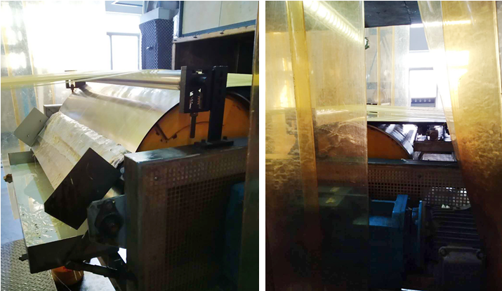 鋼帶式冷凝造條裝置是利用物料的低熔點特性,通過固定開孔下料方式將熔融液均布在其下方勻速移動的鋼帶上,在鋼帶下方設置的連續噴淋裝置的冷卻作用下,使物料在移動、輸送過程中得以冷卻、固化,從而達到造條目的。